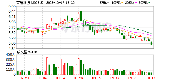 证券时报·数据宝统计显示,掌趣科技今日收盘价为5.00元,下跌2.91%,日换手率为2.09%,成交额为2.73亿元,全天主力资金净流出5002.59万元,近5日该股累计下跌7.75%,近5日资金合计净流出1.89亿元。