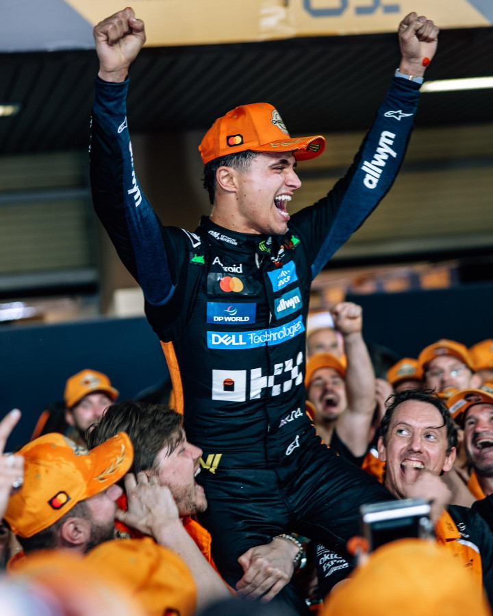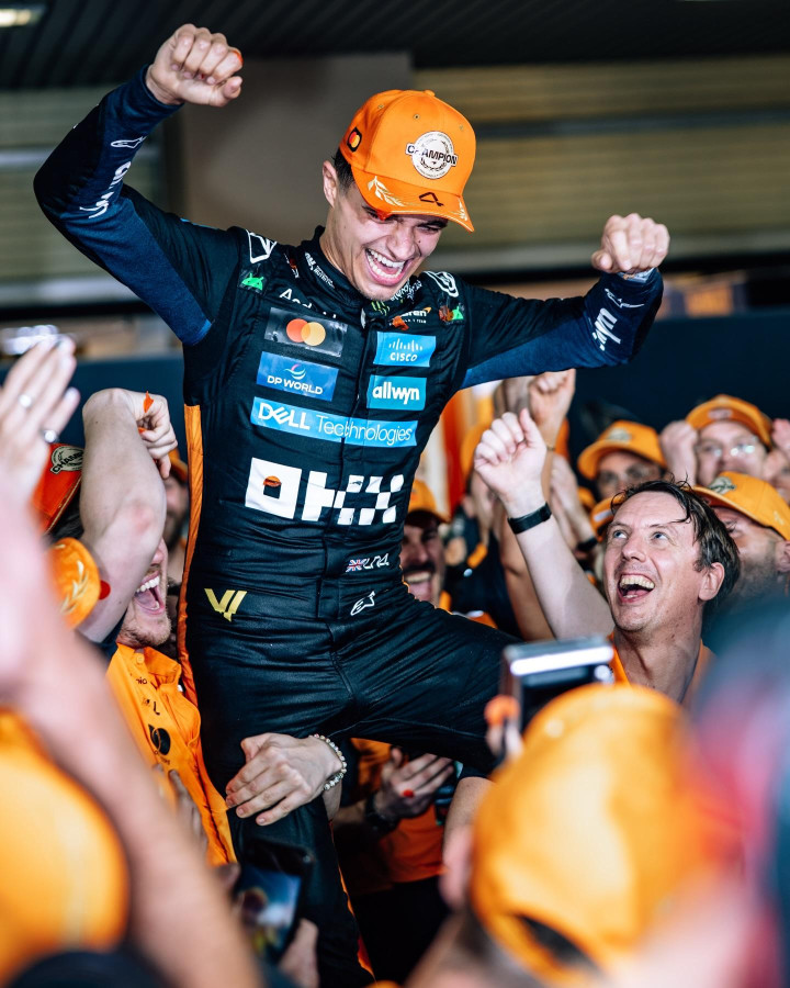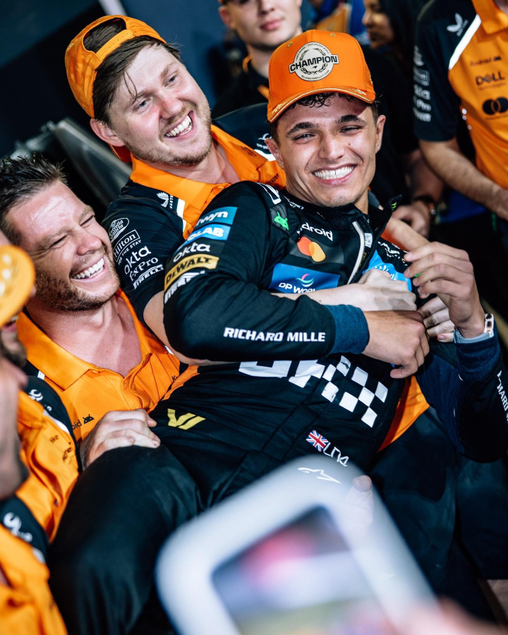 F1官方社媒发布图文:现在你可以尽情庆祝了,诺里斯!