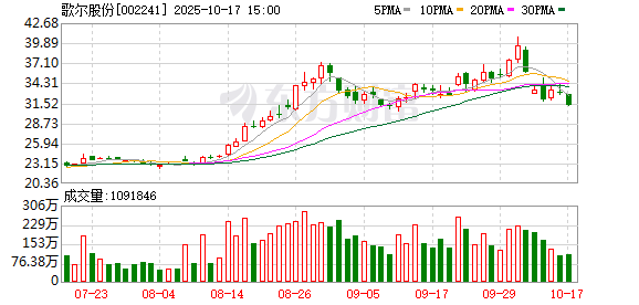 歌尔股份10月17日大宗交易平台出现一笔成交,成交量15.60万股,成交金额486.72万元,大宗交易成交价为31.20元。该笔交易的买卖双方均为机构专用席位。